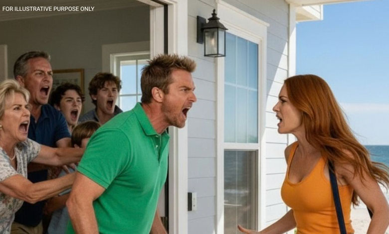 I was standing at the entrance of my own beach house, a travel bag still hanging from my shoulder, when my brother-in-law pointed directly at me and said coldly,