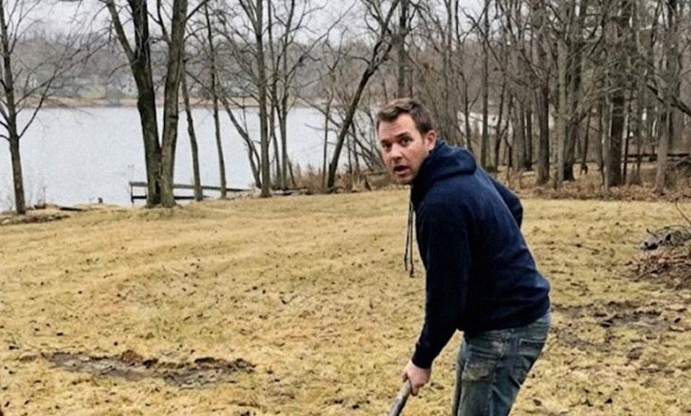 Robert stood beside a wide, freshly dug hole, shoveling dirt back in with urgency — like he needed it covered before anyone could see.