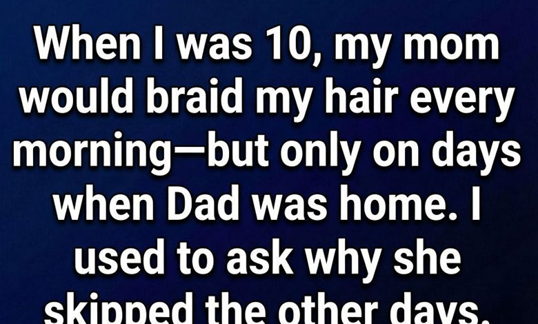 When I was 10, my mom would braid my hair every morning—but only on days when Dad was home. I used to ask why she skipped the other days. She would smile and say, “It’s better this way.” Back then, I thought it was just one of those mysterious grown-up answers, something parents said when they didn’t want to explain things to children. I didn’t question it much. I simply enjoyed the gentle tug of her fingers through my hair, the quiet moments we shared before school, and the feeling that everything in our small world was perfectly normal.